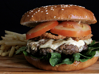 Jugosita carne preparada en casa, acompaƱada de queso manchego, tocino,...