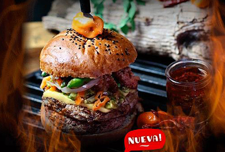 400 gr de carne casera, Chorizo argentino, Queso Manchego, Mayonesa de habanero, Guacamole, Chucrut de habanero con cebolla Chimichurri, Serranos a la parrilla.